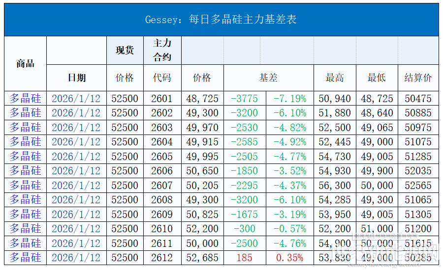 今日硅料价格整体维稳,N型料主流价格在50-56元/公斤,均价52.5元/公斤。N型颗粒硅主流价格在47-51元/公斤,均价50元/公斤。国产复投特级硅料主流价格在36-44元/公斤,均价43.5元/公斤,国产致密特级硅料主流价格在35-43元/公斤,均价42.5元/公斤。全球多晶硅料主流价格在19-22元/公斤,均价20元/公斤。