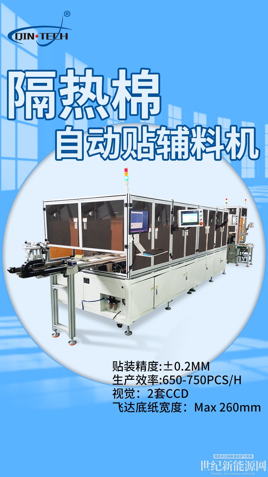 是秦泰盛公司根据客户要求定制的多工 位贴辅料机设备,该设备使用滚压贴合工艺和翻转机构可以实现胶板正反面辅料贴合,吸料板从飞达上取料, 底部相机拍照,伺服电机旋转补尝角度等功能,具有速度快、节省人工的特点。