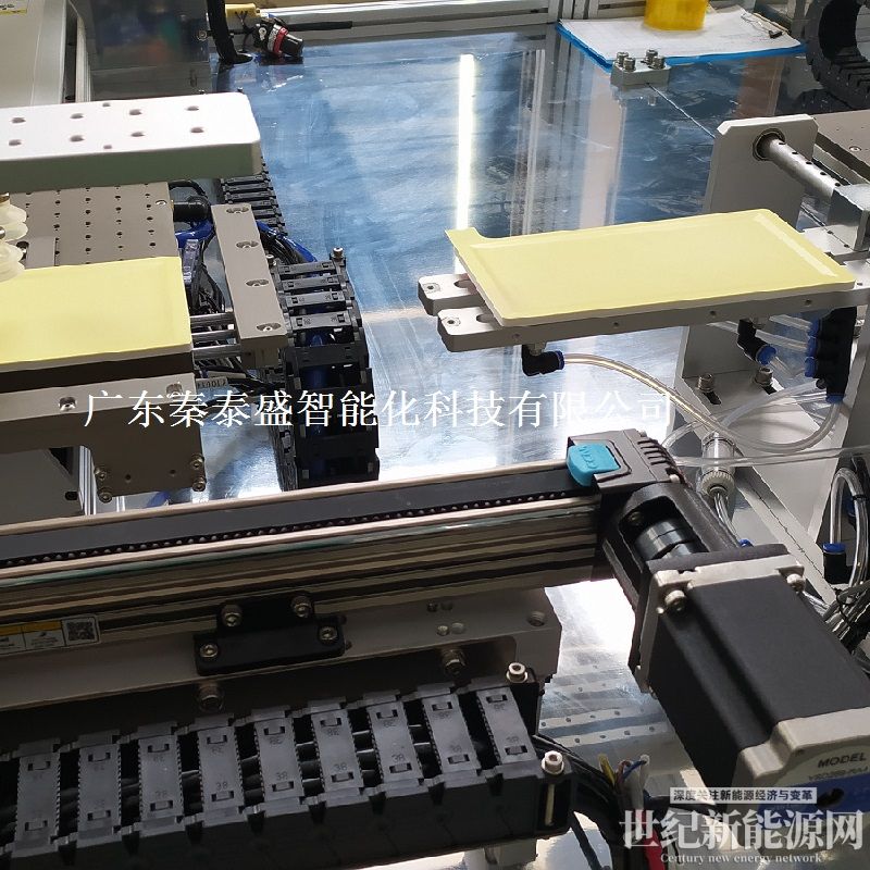 是秦泰盛公司根据客户要求定制的多工 位贴辅料机设备,该设备使用滚压贴合工艺和翻转机构可以实现胶板正反面辅料贴合,吸料板从飞达上取料, 底部相机拍照,伺服电机旋转补尝角度等功能,具有速度快、节省人工的特点。