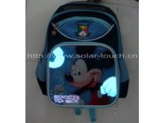 The solar LEC school bag is developed by consider the students security at night . It is via putting the different kinds of cartoon pictures of LEC on the school bags. The inverter controls the shine of light source, that can make the in vehicles check the children, to prevent the unnecessary accidents.