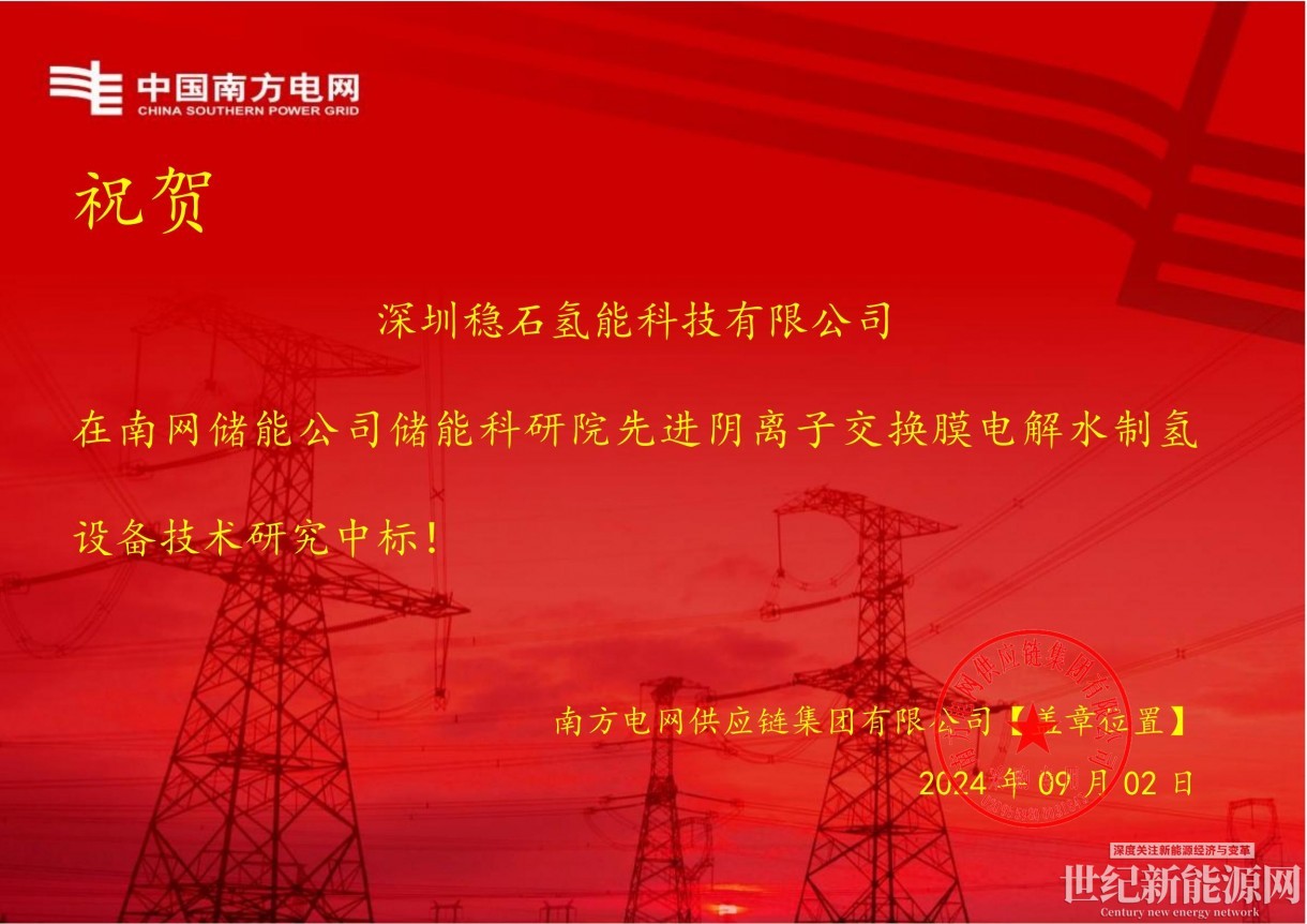 2024年9月2日,深圳稳石氢能科技有限公司正式中标全球首套单系统1.25MW-AEM(阴离子交换膜)电解水制氢项目,刷新了目前全球最大单系统功率AEM制氢项目的记录,同时也开启了国内兆瓦级AEM商业化应用示范,这标志着AEM电解水制氢技术的产业化进入了新的阶段。